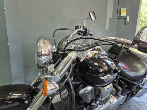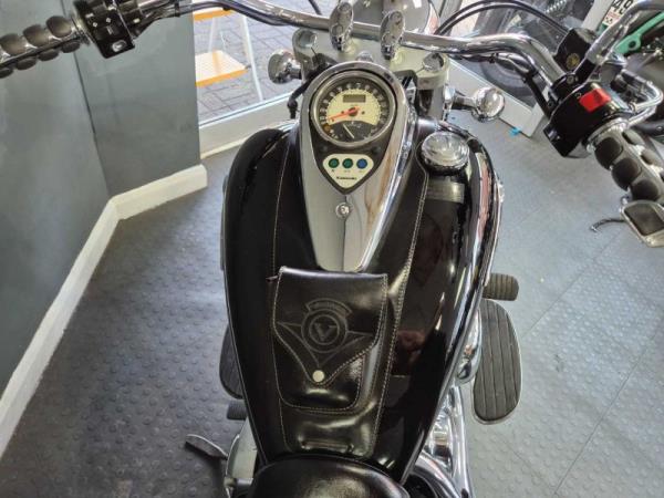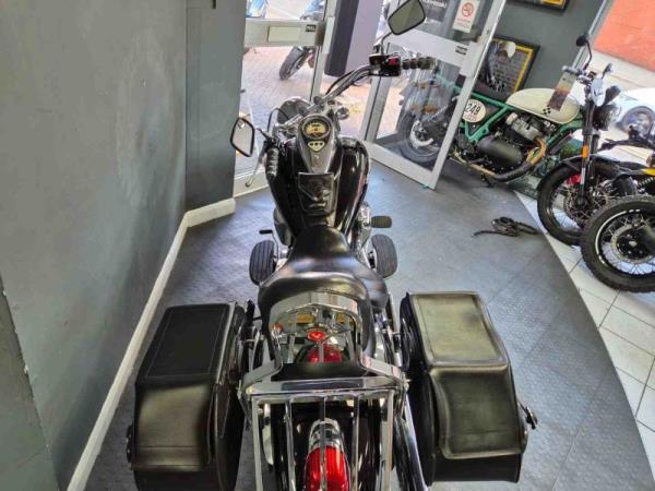 Very nice highly polished example, sold by us from new and to her subsequent owners, all books and Keys are present. FSH carried out at 781 miles, 3211 miles, 7427 miles, 12278 miles, 16634 miles, 20116 miles, 20778 miles, 22650 miles, 24597 miles, 26970 miles and 29249 miles. Many nice extras include Tool Bag, Side Panniers, Sissy Bar with Back Rest and Rack in Chrome, Customr Grips, Runner Boards Front and Rear, Tank Pocket Bag, Recently had new tyres, she also has a Meta Alarm fitted which can be reinstalled.