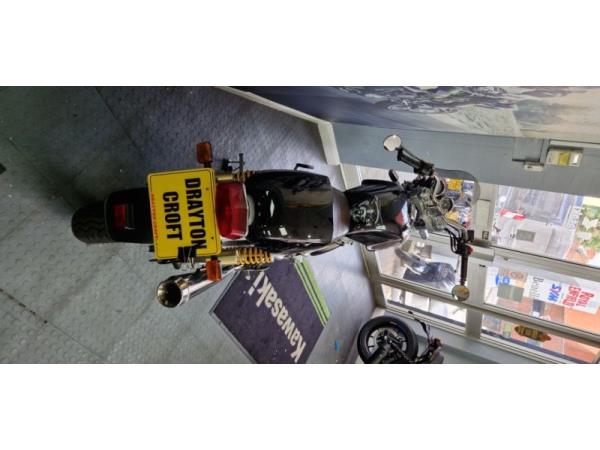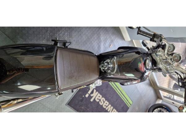 This 5 owner bike is in good condition for its age, it has 2 keys and 2 alaram fobs (Datatool), the owners amnual is present and it has been serviced at 300 miles, 1118 miles, 3000 miles and 5050 miles, it has a Custom paint job (Glittery Black Paint), it also has Raised bars, Bar End Mirrors, Tinted Screen, Solo Seat Cowl, Chrome Finished Sports cans, Alloy Gt chain cover, Brown Leather seat and Knee Pads.