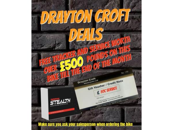 All our bikes come with a HPI report and undergo a pre delivery inspection before they leave us, they also have 3 months mechanical warranty and 12 months MOT (if needed). * FINANCE AVAILABLE WITH MULTIPLE FINANCE COMPANIES, SUBJECT TO STATUS ** Please Contact Our Sales Department For More Details 01455 250 200 or Whats App message us on 07377 141398 And To Make Sure This Machine Is Still Available Before You Travel, or view this bike instore 9am to 5pm Monday to Saturday. Offering you over 200 New and Used Bikes, All Bikes can be reserved online 24/7 on our website www.draytoncroft.com we operate a fixed price policy – the price you see is the price you pay! No fees, no catches. We can also offer UK Mainland delivery. If you want to collect a bike and ride it home, we offer a customer collection service. Our knowledgeable sales personnel do not earn commission, so you won’t get the hard sell. We want our customers to return to us time and time again, so we work hard to make sure you get the best bike for you, And if you want to part-ex, please contact us! We’re happy to take motorbikes in part exchange! Motorbikes can be secured with a deposit of £200 over the telephone – 01455 250200. Deposits accepted via either credit or debit card, Final balances are to be paid via bank transfer/debit card instore. We also offer Servicing and MOT’s instore Monday to Saturday with time slots available, Waiting is permitted in our waiting area with free Tea, Coffee and Biscuits. We also have a fully stocked clothing and accessories department instore too.