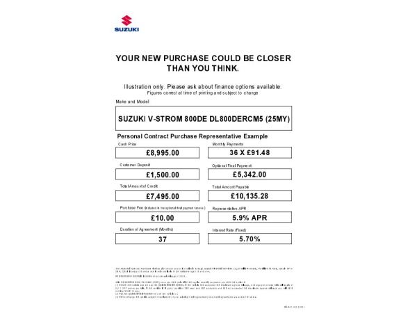 Journey without limits, with a rugged steel frame, fully adjustable 220mm travel suspension, a 21” front wheel and 220mm ground clearance. Conquer new ground with an all-new, torque loaded 776cc 270° crank parallel twin engine. Equipped with a bi-directional quickshifter, 5” colour TFT display, traction control with gravel mode and switchable ABS the V-Strom 800DE is ready for anything.